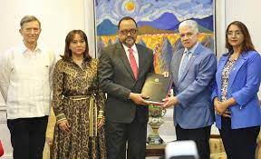 El consultor jurídico del Poder EjecutivoAntoliano Peralta, en compañía de otros funcionarios, asistió este lunes a un encuentro con el presidente del Senado de la República, Eduardo Estrella, para depositar iniciativas legislativas sobre la protección de la mujer, la lucha contra la trata y el tráfico de personas, la administración de los bienes incautados y el fomento a la competitividad de la aviación civil en el país.