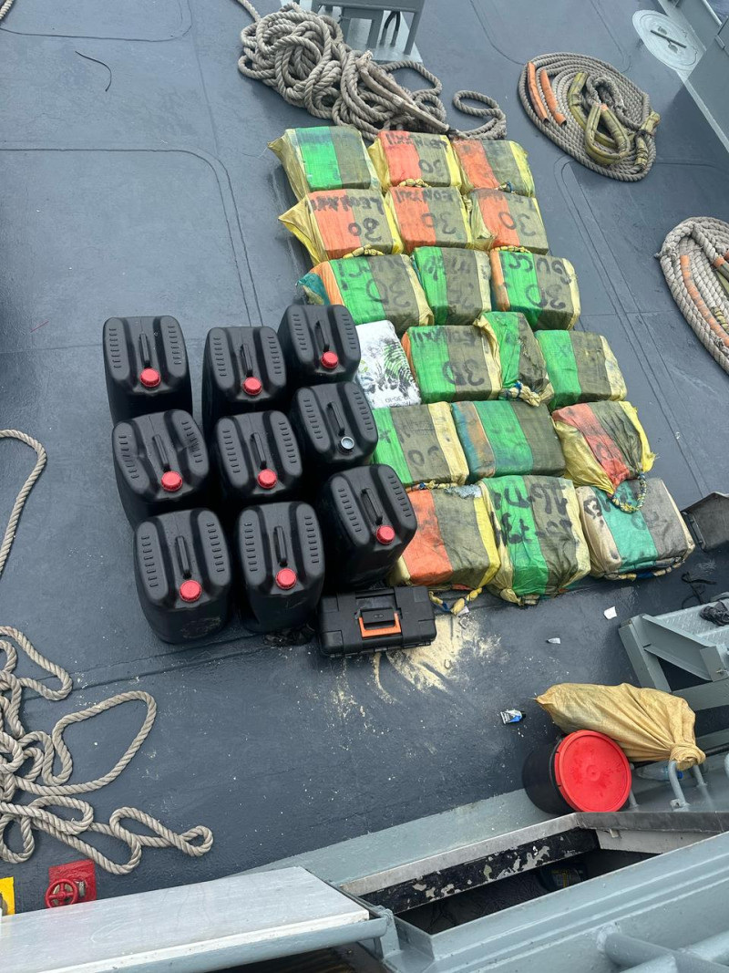 Agentes de la Dirección Nacional de Control de Drogas (DNCD), de la Armada de República (ARD), la Fuerza Aérea, (FARD) y de inteligencia del Estado, coordinados por el Ministerio Público incautaron un cargamento de 548 paquetes presumiblemente de cocaína durante una interdicción marítima, aérea y terrestre, desplegada frente a las costas de la provincia de Pedernales.