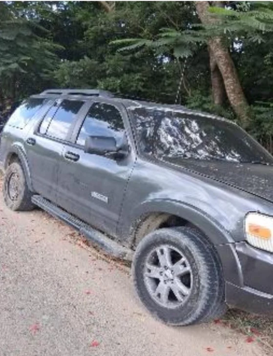 Como parte de la continuación de las investigaciones, agentes adscritos al Departamento de Homicidios localizaron en la carretera Mella, próximo a Villa Gautier, provincia San Pedro de Macorís, la jeepeta marca Ford Explorer, color gris sobre negro, placa G246725, la cual había sido abandonada.En su interior, específicamente en el asiento del pasajero delantero, fue encontrado un fusil marca Spike’s Tactical, modelo ST15, número SRM003678, envuelto en un pantalón jean con cinta adhesiva color amarillo.