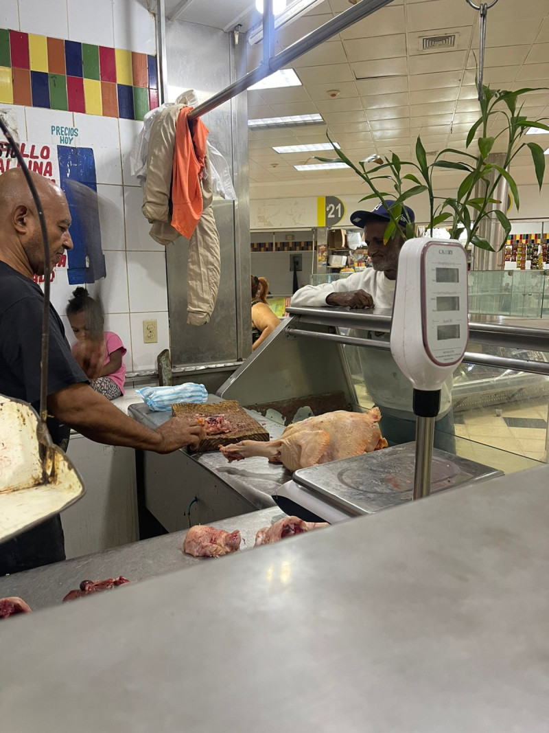 En este mercado la libra de pechuga de pollo se vende a RD$130, los muslo de pollo a RD$90 mientras que el pico y pala no cambia a comparación del mercado de Villa Consuelo, aquí también cuesta RD$50 pesos.